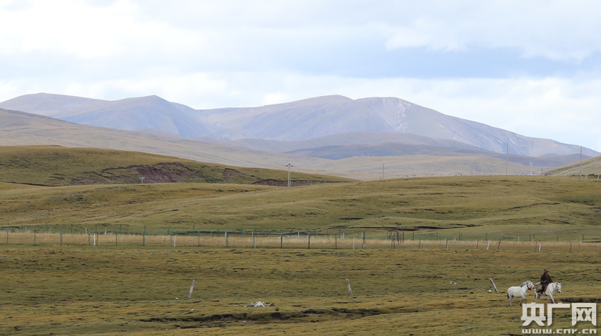 濕地內經過的牧民(中央廣播電視總臺央廣記者普布次仁 攝)