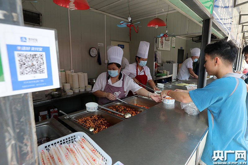 在工地食堂,10元錢就可以買到一縈一素,每天菜不重樣,且有四川、安徽、陜西等多種口味。(央廣網記者 魏煒 攝)