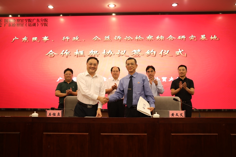 據悉,廣東民事、行政、公益訴訟檢察綜合研究基地由廣東省人民檢察院與廣東外語外貿大學合作設立,旨在進一步加強民事、行政、公益訴訟檢察理論研究,促進檢察理論與檢察實踐深度結合,構建新時代檢察理論研究新體系、新格局。今年5月,廣東省人民檢察院與國家檢察官學院廣東分院、廣東外語外貿大學進行合作洽談,達成三方合作共識,明確了“研究、教學、應用”的良性循環互動平臺合作框架。在此基礎上,省檢察院第七檢察部牽頭形成了《設立廣東民事、行政、公益訴訟檢察研究基地工作方案》,并得到最高人民檢察院審核同意和大力支持。研究基地建成后,雙方將在課題研究、課程研發、相互聘用教師、大學生實習基地建設、以及為檢察機關定向培養行政、民事和公益訴訟研究生方面,開展深度合作。