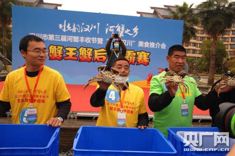 央廣網漢川10月28日消息(記者凌姝 通訊員 郭俊杰)金秋慶豐收,蟹香沁心頭。今天,湖北漢川市第三屆河蟹豐收節暨“吃在漢川”美食推介會舉辦。來自漢江流域15個城市的120多家農業企業的河蟹、小龍蝦、鱖魚等優質水產品以及大米、蔬菜、瓜果等特色農產品展銷推介等在內的系列活動精彩呈現。現場評出今年漢川的蟹王503克,超過1斤,蟹后為408克。