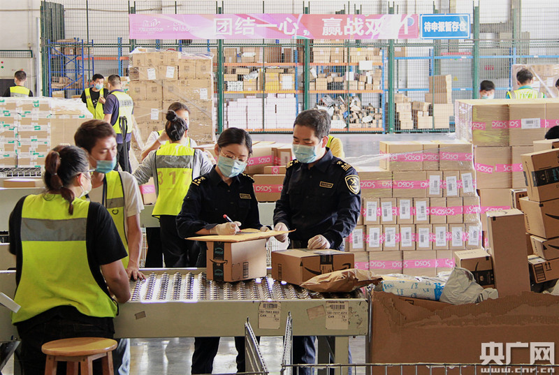 佛山海關駐南海辦事處關員對跨境電商進口貨物進行監管(央廣網發 海關供圖)