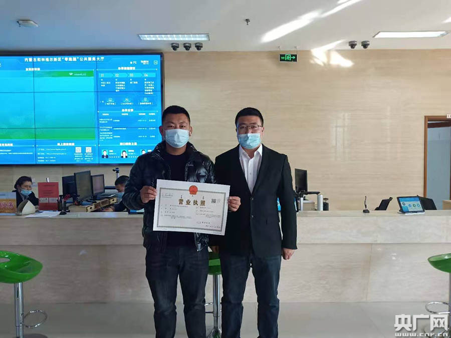 某公司通過“企業(yè)登記全程電子化”領(lǐng)取營業(yè)執(zhí)照(央廣網(wǎng)發(fā) 和林格爾新區(qū)管委會(huì)供圖)