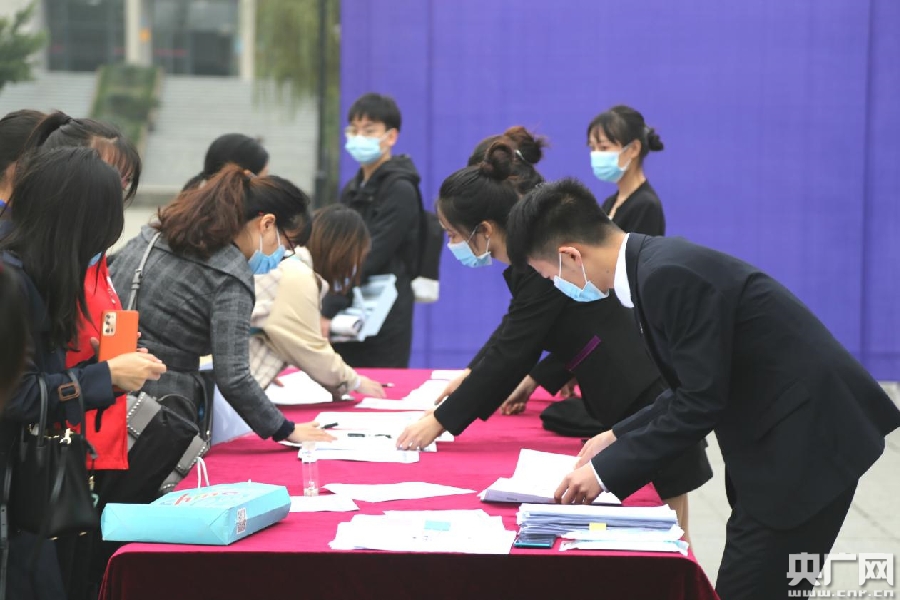 央廣網(wǎng)成都11月13日消息(記者賈宜超)11月12日,由四川省人力資源和社會保障廳、四川省教育廳主辦的“智匯天府”公共招聘進(jìn)校園大型秋季雙選會在成都銀杏酒店管理學(xué)院舉行。來自酒店旅游、智能制造、新媒體、金融、教育培訓(xùn)等不同行業(yè)的約300家單位,提供招聘崗位8500余個,共吸引該校及周邊高校2500余名2021屆畢業(yè)生參與。