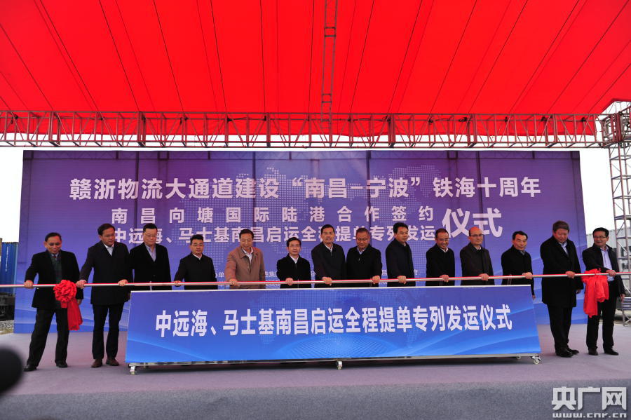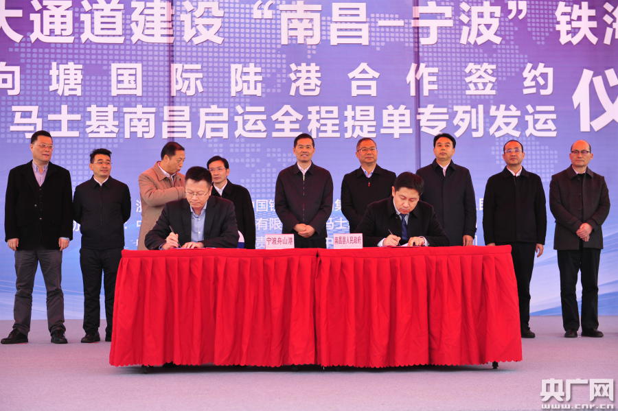 央廣網(wǎng)南昌12月2日消息(記者謝元森 通訊員李慳)12月1日,“贛浙物流大通道建設(shè)‘南昌——寧波’鐵海十周年”慶祝活動(dòng)在江西省南昌向塘國(guó)際陸港鐵路物流基地舉行。活動(dòng)現(xiàn)場(chǎng),南昌縣人民政府與寧波舟山港股份有限公司簽署南昌向塘國(guó)際陸港合作協(xié)議。