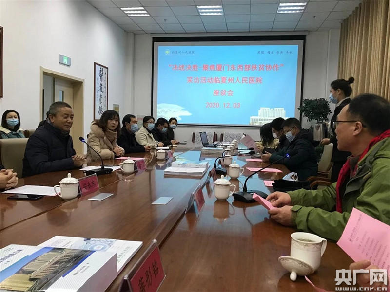 臨夏州人民醫院向采訪團介紹廈門“組團式”幫扶經驗做法(央廣網記者 陳庚 攝)