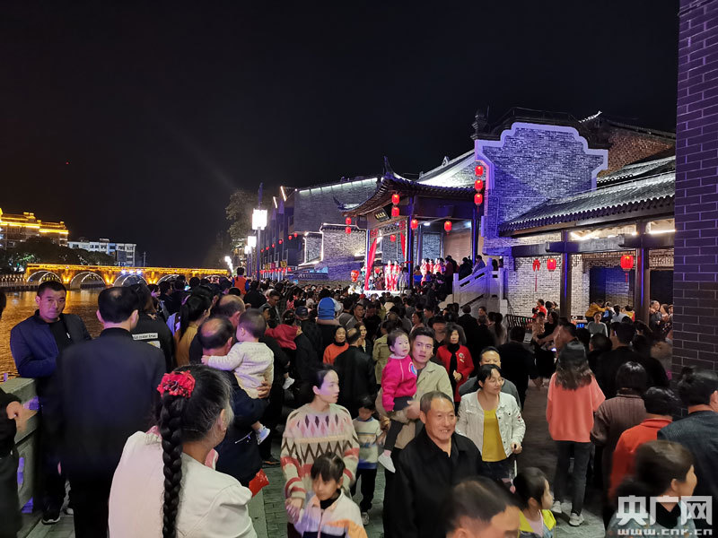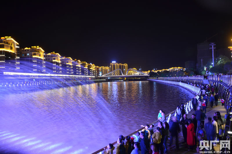 游客欣賞民俗文化街夜間河岸美景(央廣網發 通訊員供圖)