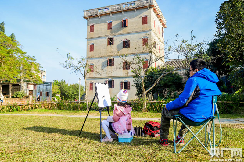 孩子們在開平碉樓等建筑名勝前進行寫生創作(央廣網發 通訊員供圖)