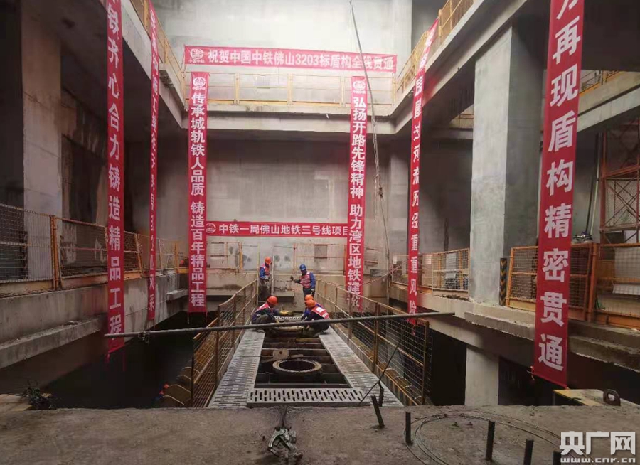 佛山市地鐵三號線工程新松站至順德醫院站左線盾構貫通(央廣記者 鄭澍 攝)