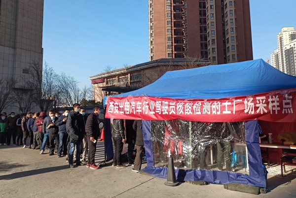 西安出租車、網約車駕駛員排隊接受核酸檢測(央廣網發 徐楊 供圖)