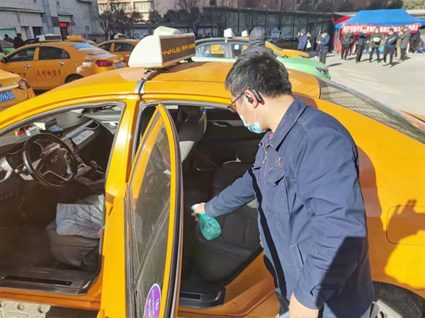 駕駛員對出租車進行全面消毒(央廣網發 徐楊 供圖)