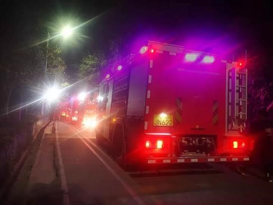 23時許深圳公益救援隊已在附近集合時刻準備支援,他們主要負責救援協助、物資保障等支援工作。凌晨12時30分許,多輛泡沫消防車進入救援現場,與此同時,新一批的深圳公益救援隊已經集結。