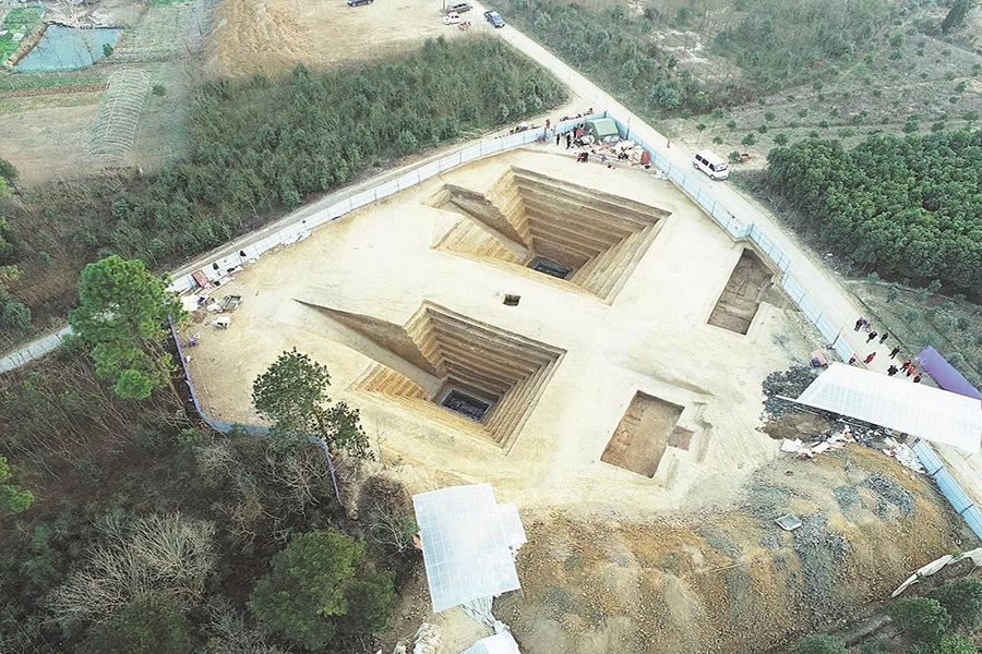 據(jù)了解,自2020年9月荊荊高鐵開(kāi)工發(fā)現(xiàn)這一墓地以來(lái),湖北省文物考古研究所就開(kāi)始進(jìn)行搶救性考古發(fā)掘。該項(xiàng)目負(fù)責(zé)人周青介紹,經(jīng)過(guò)對(duì)1200平方米進(jìn)行考古發(fā)掘,確認(rèn)該墓地是一處典型的楚國(guó)貴族家族墓地,包括兩座異穴合葬墓及其陪葬車(chē)馬坑、封土、封墻、祭祀坑,是目前所見(jiàn)布局最完整的楚國(guó)貴族家族墓地,該墓地已命名為新村墓地。