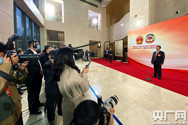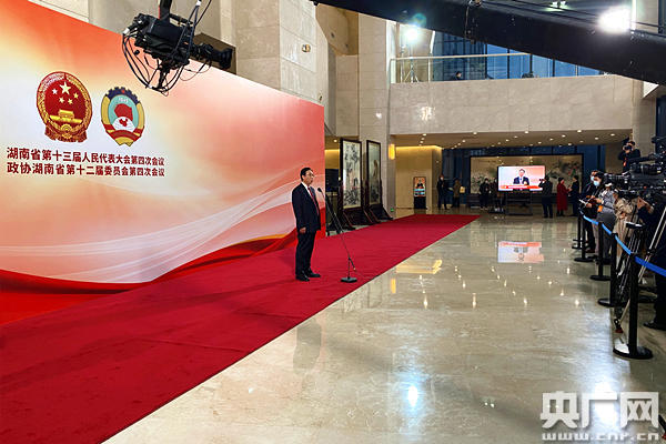 湖南省十三屆人大四次會(huì)議第二場“廳長通道”集體采訪活動(dòng)現(xiàn)場(央廣網(wǎng)記者 堯遙 攝)