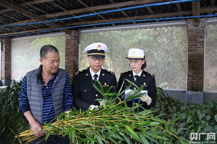“我們?nèi)粘1O(jiān)管主要查看竹葉有沒(méi)有病蟲(chóng)害,例如竹葉表面有沒(méi)有纏有白絲的葉苞,如果有就表明葉苞里面可能包裹著竹螟幼蟲(chóng)。這是一種能?chē)?yán)重危害竹子的卷葉蟲(chóng),要及時(shí)做出處理!睋荛_(kāi)眼前密密麻麻的竹叢,廣州海關(guān)所屬?gòu)幕jP(guān)屬地外勤科副科長(zhǎng)徐蕾拿起竹子前段較嫩的竹葉,仔細(xì)翻開(kāi)查看,“這些竹葉都十分健康、鮮嫩,是大熊貓最喜愛(ài)的食物!