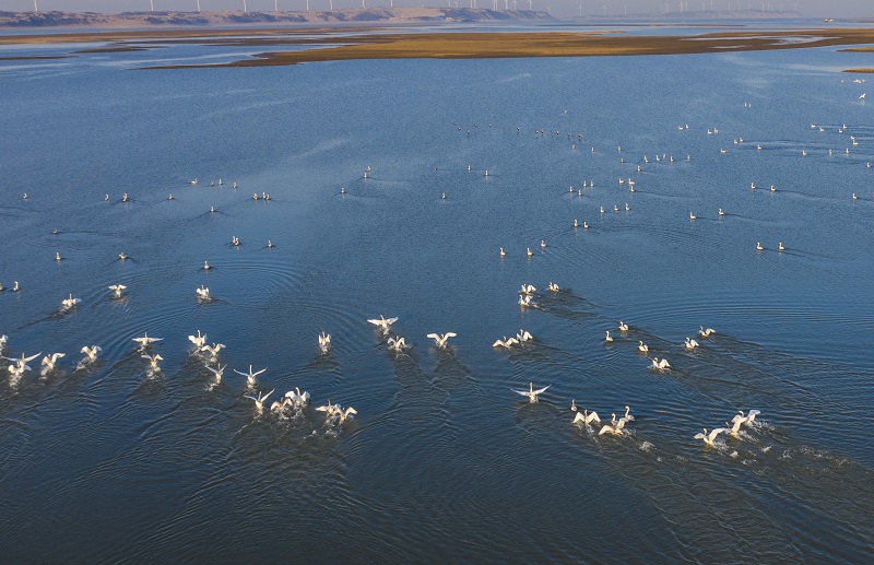 江西鄱陽湖:初春天鵝舞(央廣網(wǎng)發(fā) 通訊員供圖)