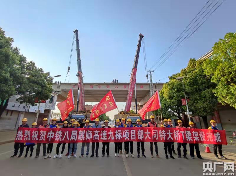 央廣網昆明3月18日消息(記者李健飛 通訊員劉興浩)3月17日,隨著最后一片預制T梁精準移動至橋墩墊石支座上,標志著中鐵八局昆明公司麒師高速公路大同特大橋T梁全部架設完成,全橋順利貫通。