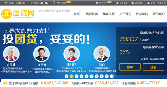 2014年12月9日,國(guó)內(nèi)互聯(lián)網(wǎng)金融領(lǐng)軍企業(yè)的團(tuán)貸網(wǎng),僅僅兩年多時(shí)間累積成交金額便突破40億。作為一家高效、透明、安全、便捷的創(chuàng)新型互聯(lián)網(wǎng)金融公司,團(tuán)貸網(wǎng)致力解決小微企業(yè)及個(gè)體戶融資,一直備受國(guó)內(nèi)投資者親睞。