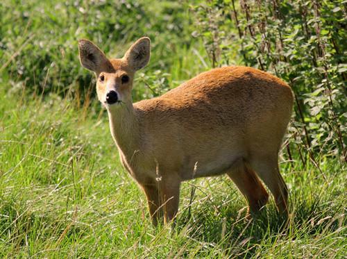 獐屬鹿科,也稱水鹿,高約半米、長約1米,無角,毛色棕黃,性情溫順,食草或嫩葉。它們喜愛灘涂、淺灘,從新石器時代就廣泛分布于上海市郊,松江的廣富林遺址中也有獐骸骨。但隨著城市化進(jìn)程的加快,獐逐漸失去了家園。上世紀(jì)初,獐在上海絕跡。