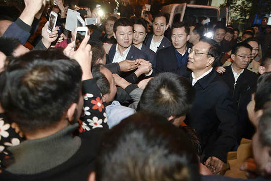 11月19日,國務院總理李克強在暮色中現身浙江義烏青巖劉村?偫砀吲d地鼓勵正忙著接單的“店小二”既當就業者,又當創業者,未來成為“大掌柜”。在考察中李克強說,網店經營在你們村集中發展得最早,現在村里的網店數量已經是居民戶數的十倍,網店在虛擬空間服務實體經濟,開拓巨大的市場空間,你們不愧是“網店第一村”!