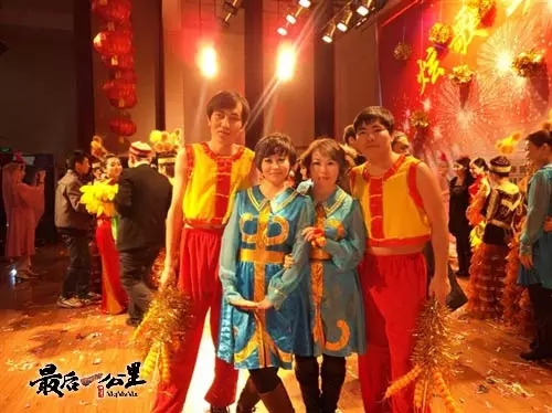 烏仁圖雅(左二)和同學(xué)們?cè)谶|寧科技學(xué)院參與元旦晚會(huì)