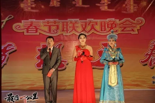 烏仁圖雅(右一)在主持和什托洛蓋鎮(zhèn)春節(jié)聯(lián)歡晚會(huì)