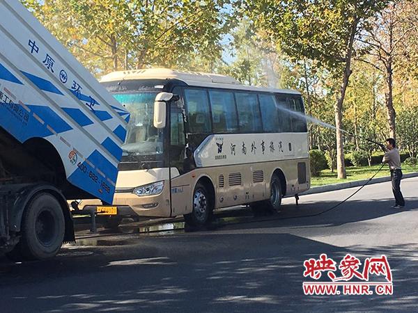關鍵詞:洗車;男子;灑水車;大巴車;中原區