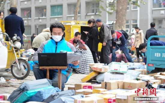 資料圖:11月11日,中國(guó)民眾每年一度的購(gòu)物狂潮大幕開啟,濟(jì)南快遞業(yè)“同城快遞”率先啟動(dòng)投送熱浪,濟(jì)南一高校快件配送集中地?cái)[滿學(xué)生們的購(gòu)物快件,取件學(xué)生絡(luò)繹不絕。 中新社記者 張勇 攝