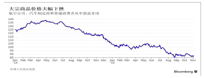 迄今為止,中國經濟放緩的主要影響都體現在大宗商品價格上,因為中國的采購量遠低于供應商預期。今年以來,彭博商品指數(Bloomberg Commodity Index)累計下跌近20%,降至1999年以來最低水平附近。
