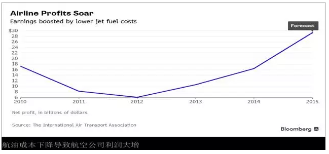 由于航空燃料成本大幅下降,航空公司也受益匪淺。10月29日,歐洲第二大航空公司德國漢莎航空公司(Deutsche Lufthansa AG)上調了對2015年利潤的預測,因年中需求增長和油價下跌推動該公司第三季度營業利潤飆升51%。總部設在德國科隆的德國漢莎航空公司稱,今年燃料支出總計將達到57億歐元(約合61億美元),較去年減少11億歐元。