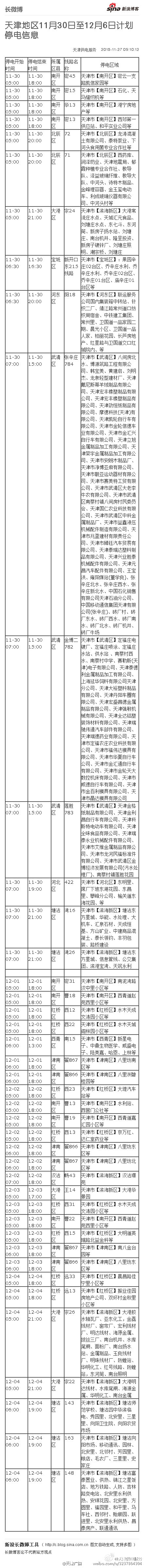 天津地區(qū)11月30日至12月6日計劃停電信息發(fā)布