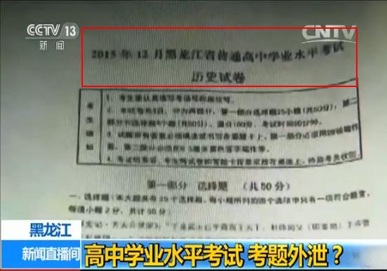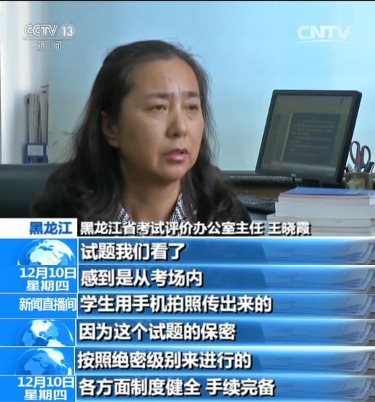黑龍江省考試評價辦公室主任王曉霞:試題傳出當天,我們做了初步判斷,認為是考場內學生用手機拍照傳出來的。