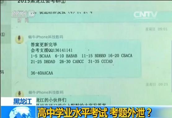 根據教育部相關文件,考試期間通過手機等通訊設備傳輸答案要受到嚴厲處罰;相關部門也稱此次考試采取了嚴格措施。那么在上千人的幾個QQ群里瘋傳的,真是這次黑龍江普通高中學業水平考試的試題和答案嗎?