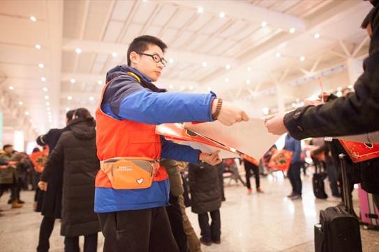 (飛鶴志愿者向上海虹橋火車站旅客發放新春“!弊)