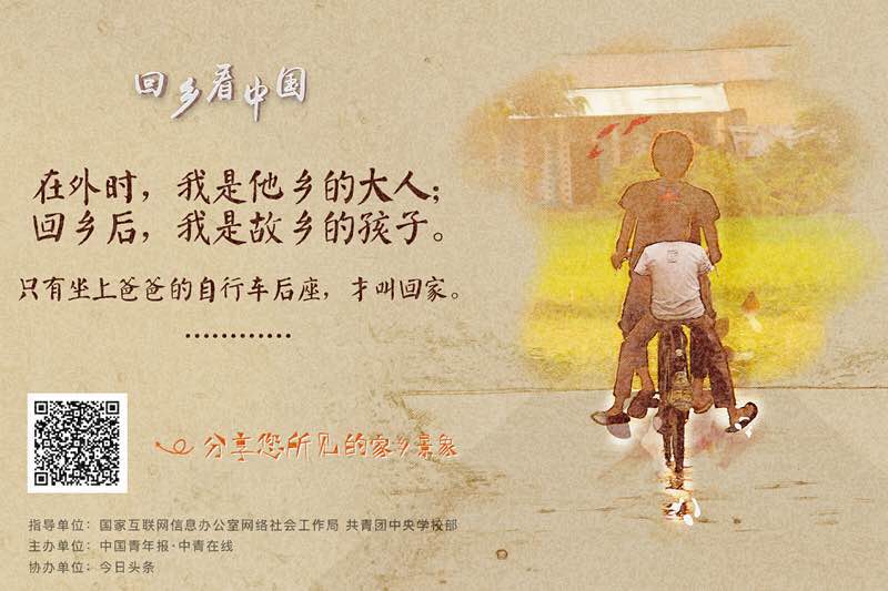 中青在線北京2月4日電(中國青年報·中青在線記者 唐軼)春節回鄉,您是否“望得見山、看得見水、記得住鄉愁”?在猴年新春到來之際,在一年一度人口大遷徙之際,中國青年報·中青在線、冰點暖聞客戶端攜手今日頭條及多家地方主流媒體微信公眾號共同發起“中國好網民·回鄉看中國”2016網上尋找百名青年觀察員行動。