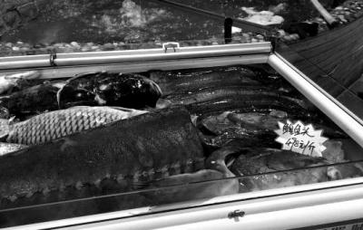 2月16日,魚類展示柜上新增了一個黃色紙殼價簽,黑筆手寫“鰉魚頭498元/斤”。