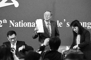 十二屆全國人大四次會議12日在北京梅地亞中心舉行記者會,中國人民銀行行長周小川,副行長易綱、潘功勝、范一飛等就“貨幣政策是否調整”“如何看待首付貸”“互聯網金融監管”等熱點問題回答了中外記者提問。