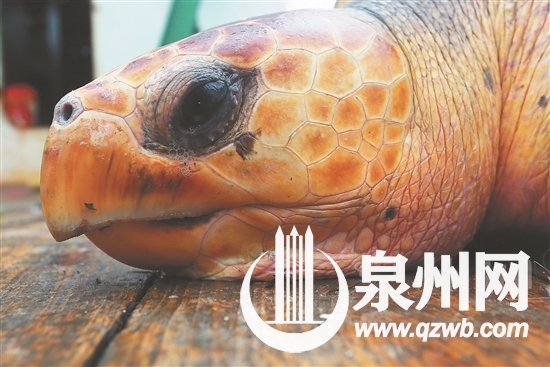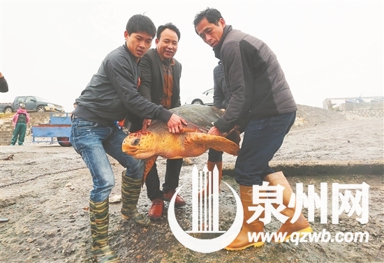 隨后,李阿尾和惠安縣海洋與漁業局取得聯系。經過辨認,這只海龜為“太平洋麗龜”,是國家二級水生野生保護動物。按照漁民的說法,海龜“一年長一斤”,135斤重,年紀估計得有上百歲。“有靈性!”李阿尾的妻子說,有人聽說他們捕到大海龜,出幾萬元想買回去放到寺廟里供養,也有人出高價想買回去宰殺。不過,李阿尾和同伴決定將大海龜放生。
