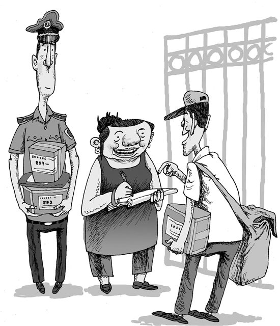 比如遇上一個用喇叭喊著收舊手機的男人,大媽就拉上人家,“聲音小點小點,小區里不能進來的。”