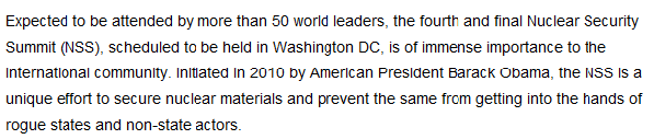 第四屆核安全峰會在美國首都華盛頓拉開帷幕,全球50多位國家領導人出席會議,這對國際社會帶來的影響不言而喻。美國總統奧巴馬于2010年發起了首屆核安全峰會,旨在保證核材料的安全運用,防止其落入“流氓國家”和非國家行為體等危險分子的手中。