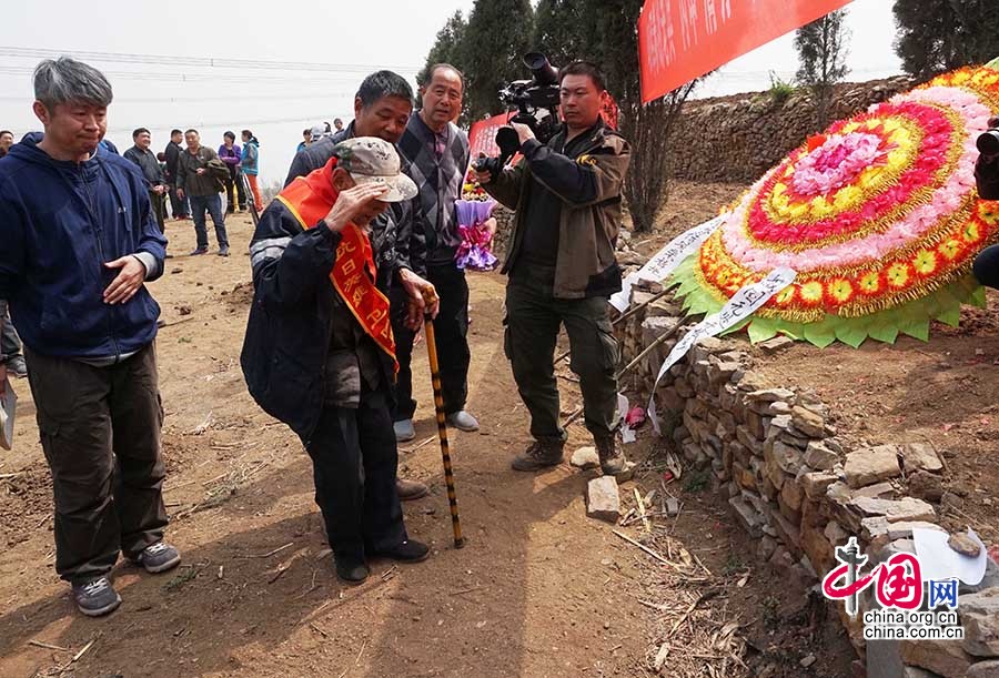 王衛青說,去年我們在尋找抗戰老兵中,曾找到五位參加過常平阻擊戰幸存者老兵,后來先后有兩位老人謝世了。為了不給在世的老兵留下遺憾,今天我們帶著三位老人,重訪故地,憑吊當年的抗戰老戰友,也算了了老人的心愿。今天看到三位老人在戰友墓前落淚,對我們這些后人來說也是警示,要勿忘國恥,奮發圖強。