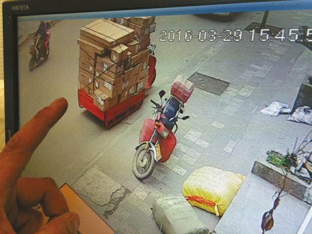 裝滿化妝品的三輪車在快遞公司門口被盜