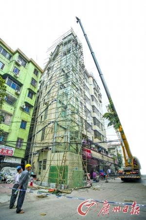 白云區(qū)京溪街有一座7層高樓,外墻建有觀光梯,業(yè)主賴先生說(shuō),這為方便家中老人上下而建設(shè)的。但這座電梯因?yàn)樯嫦舆`建引來(lái)不少投訴。昨日,白云區(qū)京溪街通報(bào)稱,街道執(zhí)法隊(duì)已進(jìn)場(chǎng)對(duì)電梯實(shí)施拆除。