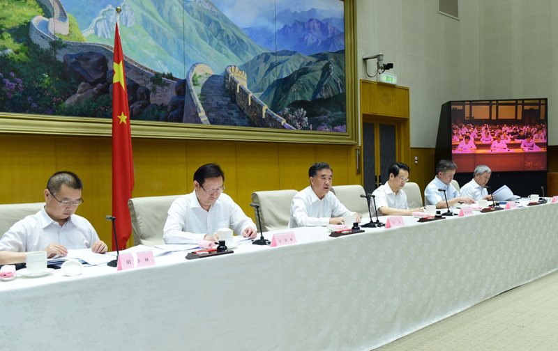 6月17日,全國金融扶貧工作電視電話會議在北京召開,國務院副總理、國務院扶貧開發領導小組組長汪洋出席會議并講話。新華社記者 張鐸 攝