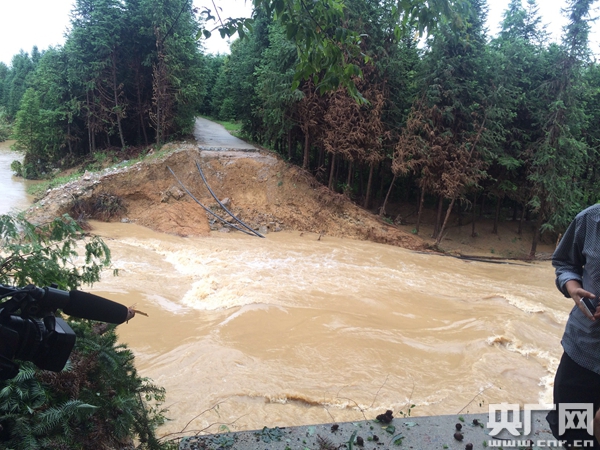 到達事發地后發現,雙西湖村黃泥湖撇洪溝已出現長50米寬10米高5米的缺口。東至縣水務局黃學良副局長告訴記者:“決口下游就是黃泥湖和七里湖,如果情況繼續惡化,會直接危及下游的兩萬人和七千畝農田。”
