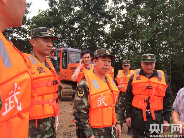 4日上午11時許,安徽總隊王寶音司令員親臨任務一線,查看災情,指導現場搶險施工,并指示官兵科學施工、加快進度、注意安全。支隊官兵深受鼓舞,繼續奮戰在搶險救援第一線。