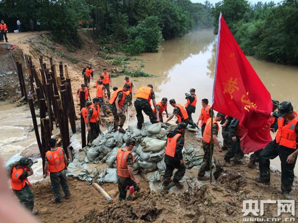 安徽東至:洪水肆虐堤壩決口 黃山武警馳援封堵(組圖)