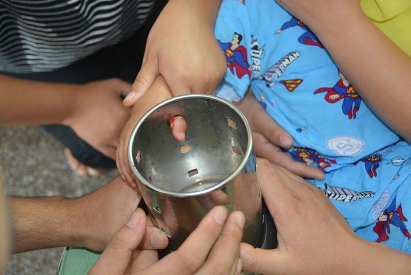 安徽一歲男童手指 蹊蹺被卡不銹鋼筷籠