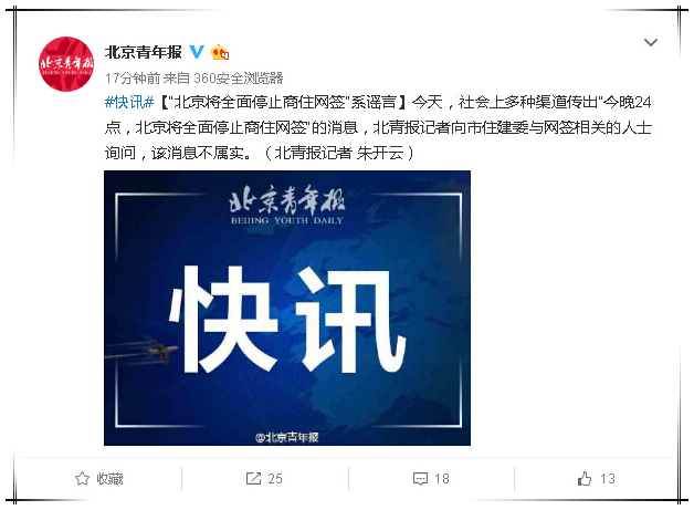 【傳聞】“6月14號晚24點,北京將全面停止商住房網簽”的傳言,引發了一輪商住房的“搶購潮”。相關內容甚至細化到稱,“從6月15號停止商住網簽7月1日開始限購”。