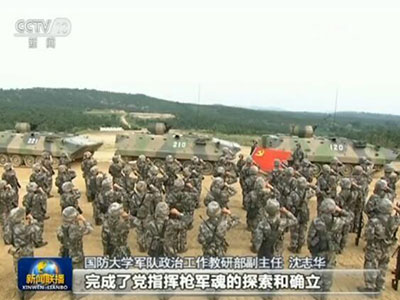 國防大學軍隊政治工作教研部副主任沈志華:從建黨之初到建軍之始,我們黨在長達6年的血雨腥風中,摸索出“槍桿子里面出政權”的真理,完成了“黨指揮槍”軍魂的探索與確立。“正是有了這個魂,才有了后來民族解放、國家獨立。”“抓不住這個歷史的‘根’,就立不起今天改革強軍的‘魂’。”
