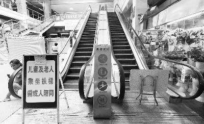 今天上午9時該市場開門營業,記者看到,市場內電梯并未正常啟動,有顧客準備乘坐,被保安人員制止。